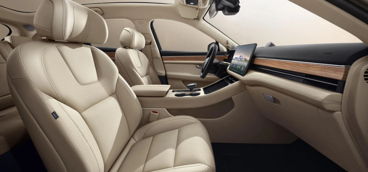 相较于特斯拉的简约风,AITO问界M5纯电又是如何演绎中式的极致豪华呢?来到AITO问界M5纯电的座舱,Nappa纹的真皮座椅,无论是触感还是质感,都呈现着高级感。搭载15.6英寸2K HDR中控屏幕,内置HarmonyOS系统,在车内19单元、输出功率为1000W的HUAWEI SOUND音响系统加持下,为用户带来殿堂级的乘坐享受。